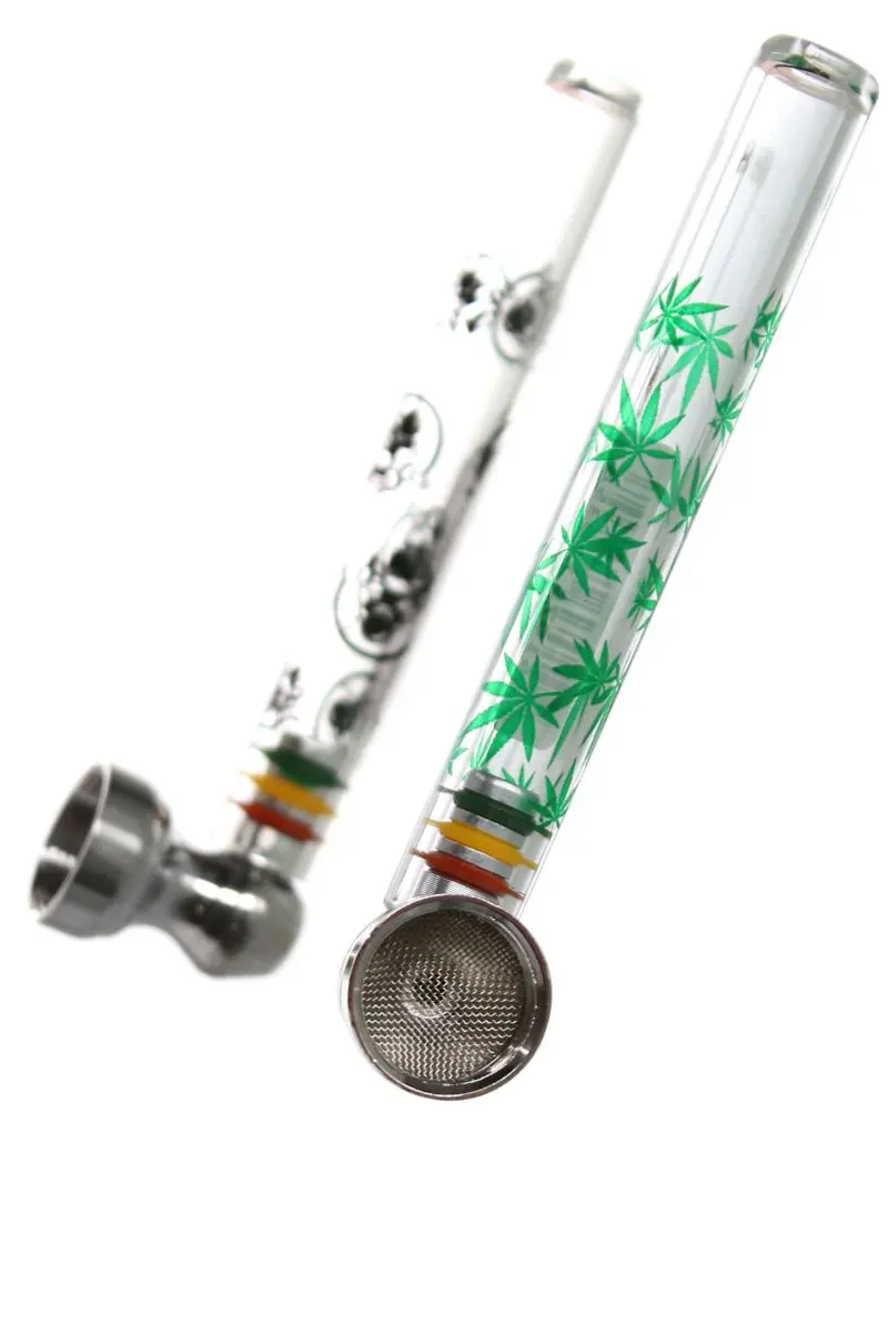 O Cachimbo de Vidro Cosmos & Leaf da CHAMP HIGH combina design criativo e funcionalidade. Fabricado em vidro resistente, apresenta decorações com folhas de cânhamo ou motivos cósmicos, enviadas aleatoriamente.
