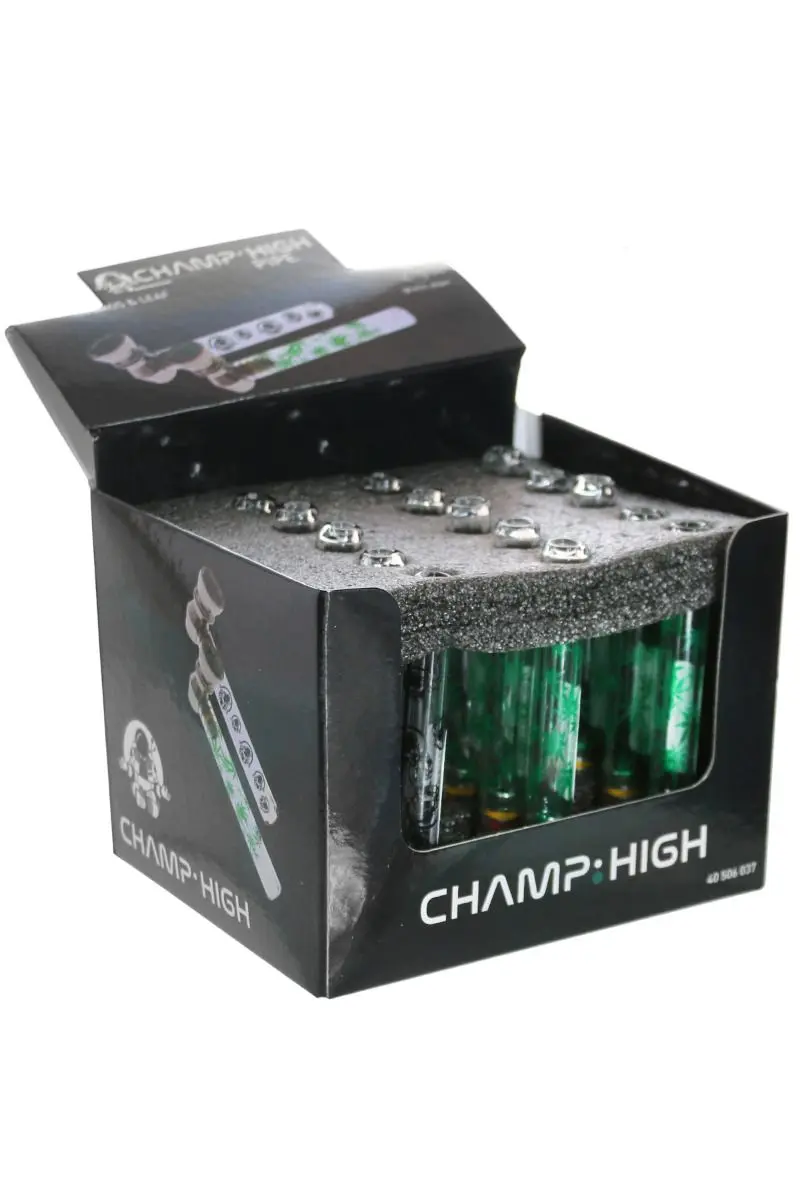 O Cachimbo de Vidro CHAMP HIGH Cosmos & Leaf combina design criativo e praticidade. Fabricado em vidro resistente, apresenta decorações com folhas de cânhamo e motivos cósmicos. Inclui bowl metálico removível com grelha, ideal para uma utilização simples e durável.