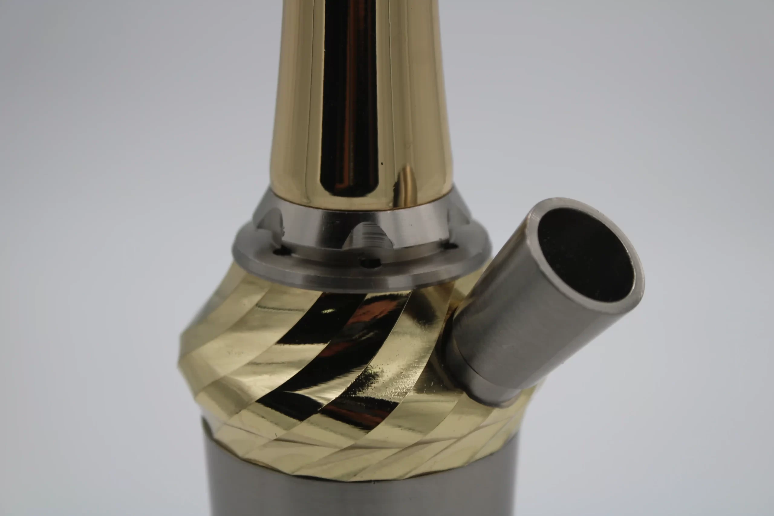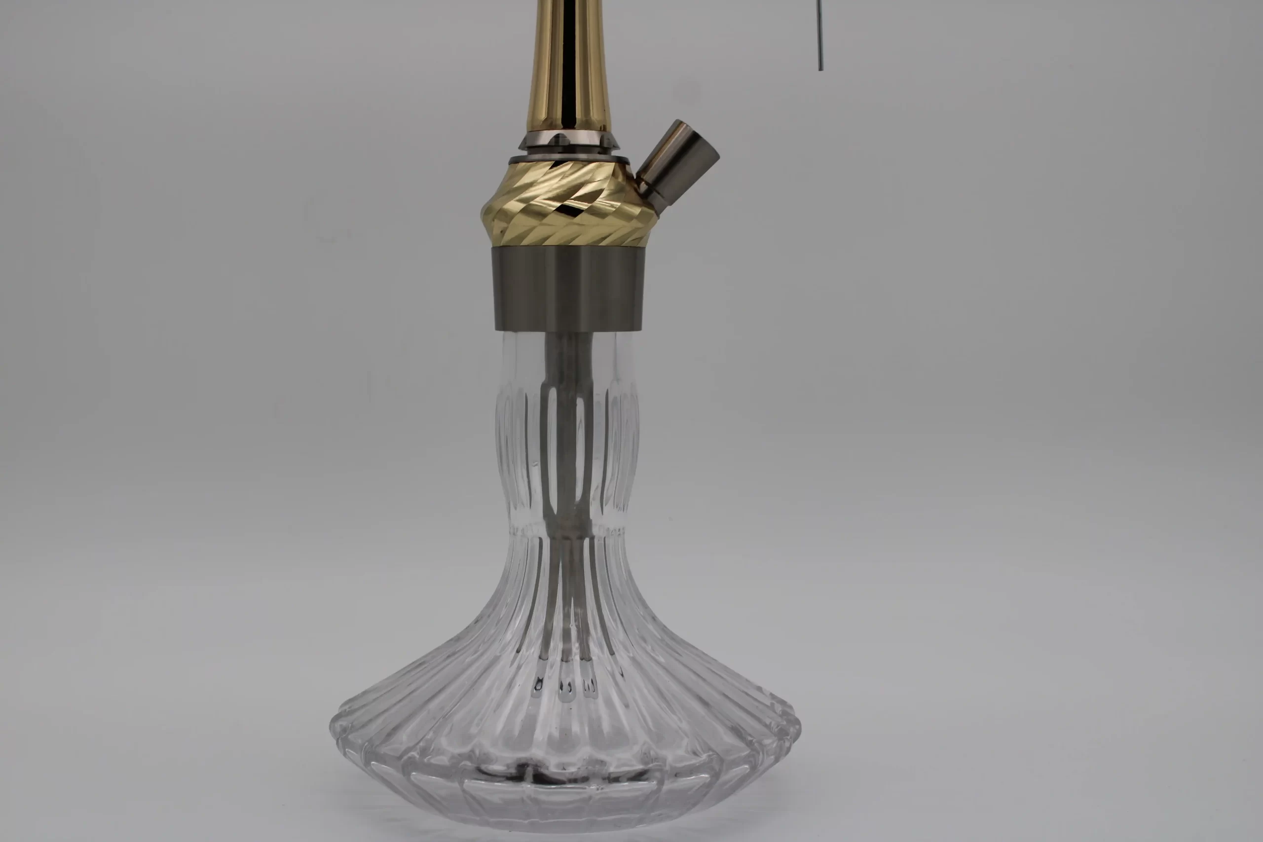A GOLDWAVE Hookah distingue-se pelo visual elegante e pela combinação de materiais de qualidade. Com 42 cm de altura sem cabeçote e aproximadamente 48 cm com o cabeçote instalado, apresenta um tamanho ideal para utilização em casa ou em espaços comerciais. É uma opção económica, indicada para quem pretende um conjunto completo, pronto a usar, sem gastar muito.
