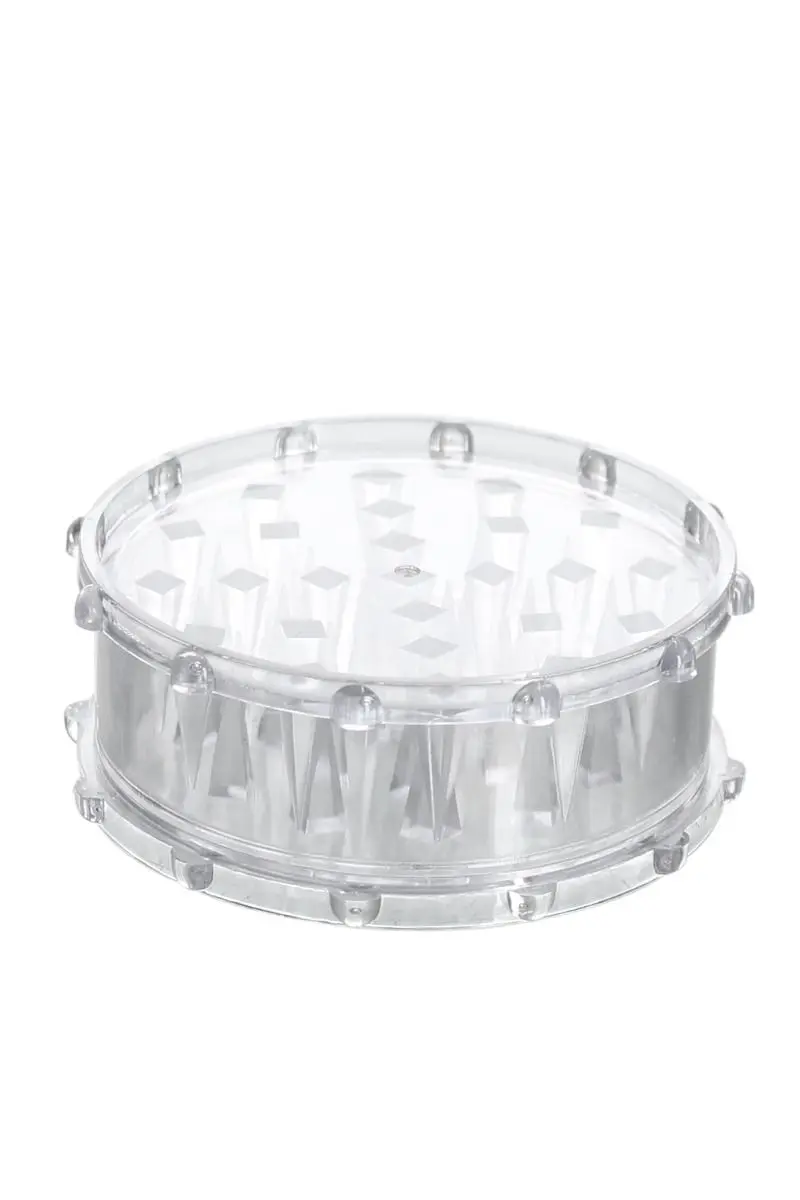 Fabricado em plástico transparente resistente, permite ver o interior enquanto tritura. O design com dentes afiados tipo “Shark Teeth” garante uma moagem uniforme, e as bordas com saliências arredondadas oferecem uma pega firme e segura, mesmo com ervas mais secas ou densas.